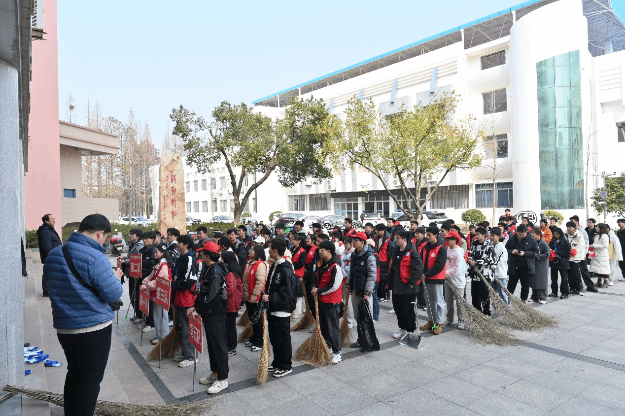 bw必威西汉姆联官方网站的师生们早早地集合在指定地点,准备投入到清扫活动中。他们身着统一的志愿者服装,手持扫帚、簸箕等清洁工具,脸上洋溢着热情洋溢的笑容。