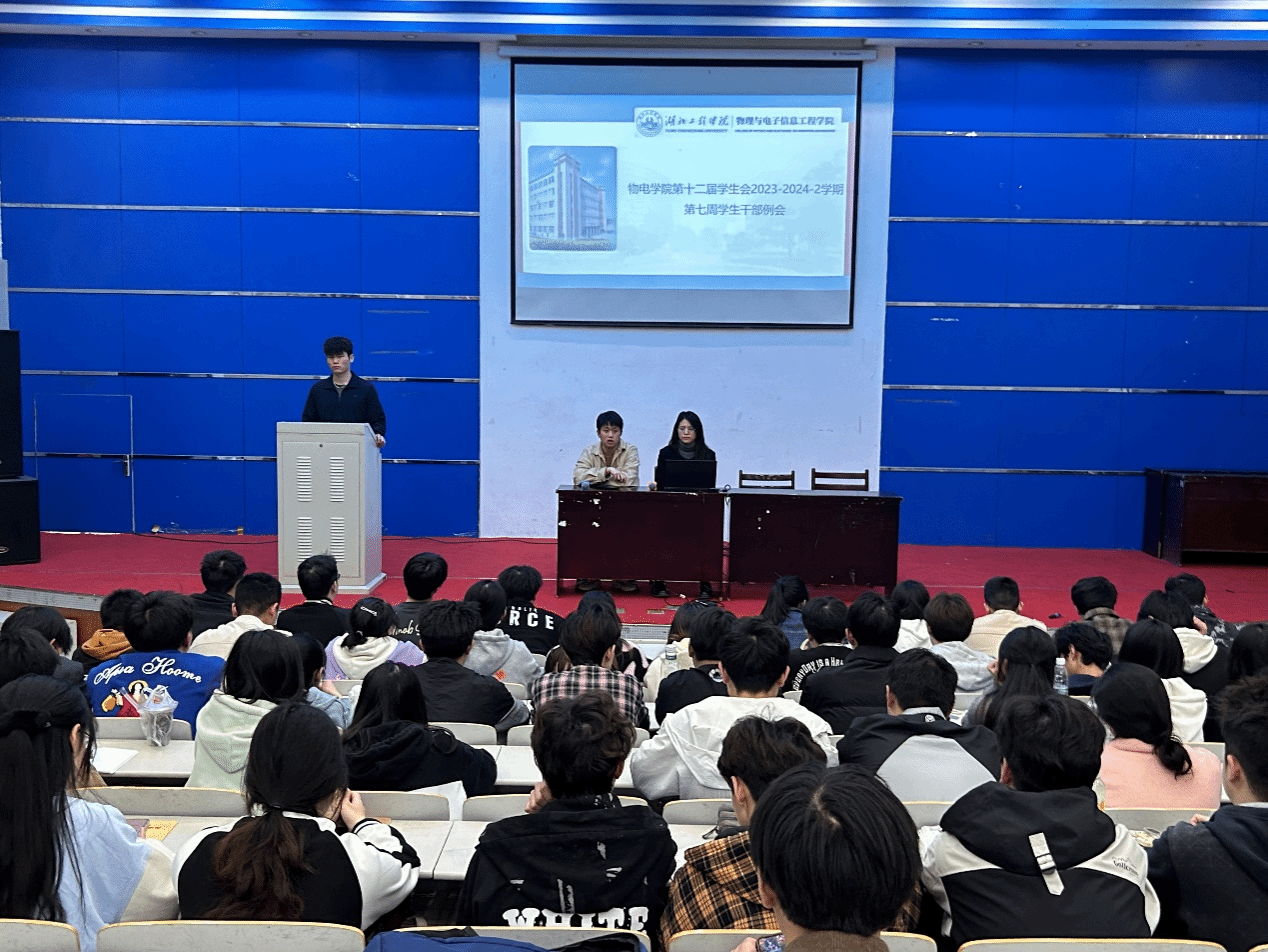 (通讯员 熊杰 摄影 余飞扬)为进一步增强员工干部的责任意识,提高员工干部的工作能力和综合素养,bw必威西汉姆联官方网站于2024年4月8日晚上6点在格物楼报告厅举行了第七周员工干部例会。bw必威西汉姆联官方网站bw必威西汉姆联官方网站辅导员彭宇航、李霄,以及员工会各部门主席、全体员工干部、各班级班长、各班级学习委员参加会议。会议由员工会主席刘国成主持。