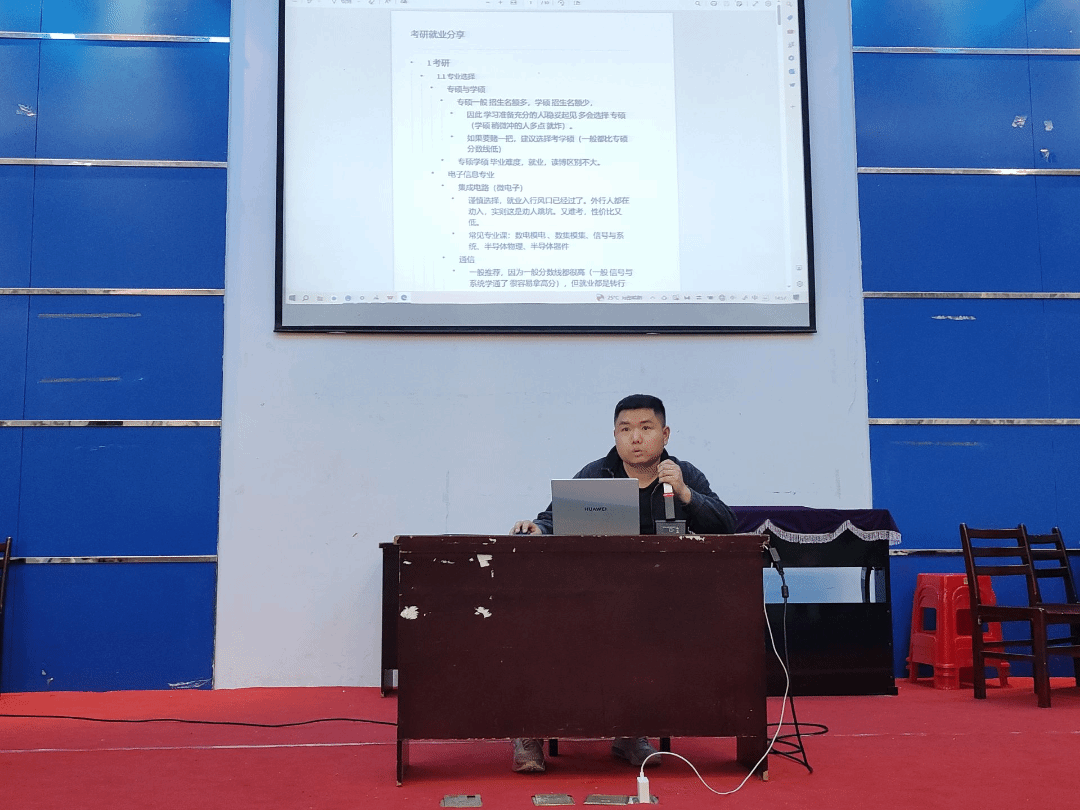 分享会上,本专业的考研学子纷纷上台分享他们的备考经验和心得。他们结合自身的考研经历,从备考策略、时间管理、资料选择等多个方面进行了深入剖析,为在场的同学提供了切实可行的建议。