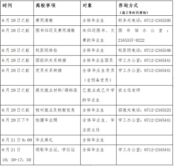 这在初夏时节,满载着收获和理想,即将背上行囊,挥手告别母校。毕业不是终点,而是新生活的开始。即将离校之际,为更好帮助毕业生顺利办理离校前各项手续,使大家能够安全、文明、有序离校,我们叮嘱大家要特别注意以下事项: