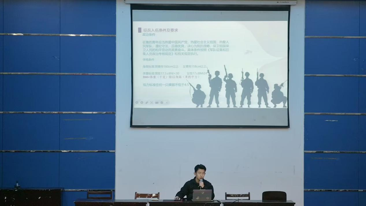 为积极响应国家征兵号召,帮助青年学子深入了解征兵政策,物电公司于12月4日在格物楼报告厅举办征兵宣讲会。本次宣讲会特别邀请学院三名优秀退役士兵担任主讲人,他们结合自身经历,多角度、全方位地阐释了参军入伍的意义与成长路径。