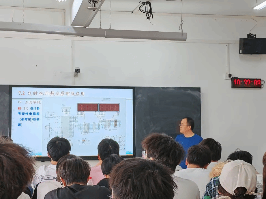 为了让员工更好地掌握知识,方老师采用理论与在线仿真相结合的教学方法。他结合精心设计的案例,逐步拆解任务流程,从定时器的初始化设置,到时间片的划分与调度,再到矩阵键盘扫描和数码管显示的具体实现,每一个环节都讲解得细致入微。员工们全神贯注,认真记录笔记,积极参与课堂互动,课堂气氛活跃。在知识传授的同时,方老师还巧妙融入课程思政元素。引导员工在设计的过程中,从现实问题出发,以工程师的角度、做产品的角度思考自己的设计。在讲解多任务处理的协作与平衡时,方老师引导员工思考团队合作和时间管理的重要性,希望员工们做好个人的时间管理,珍惜大学时光,合理规划学业,树立正确的职业理想。此次公开课不仅展示了方老师扎实的专业功底,也为教师们在课程思政建设方面提供了参考借鉴。