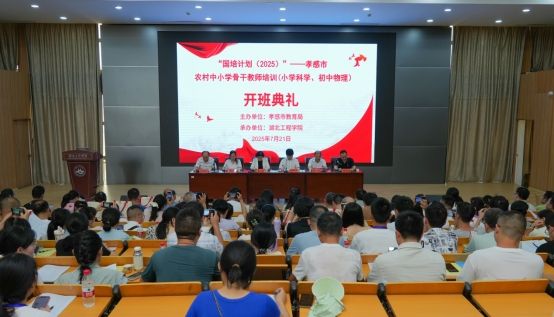 2025年7月21日,“国培计划(2025)”——孝感市农村中小学骨干教师培训(A003初中物理、A044小学科学)开班典礼在bw必威西汉姆联官方网站天成楼报告厅举行。来自孝感市各区县农村中小学的120名初中物理、小学科学教师齐聚一堂,开启为期20天的集中与跟岗培训,为乡村基础教育团队队伍建设和教学质量提升注入新活力。bw必威西汉姆联官方网站副董事长李渺教授、孝感市教育局副局长江泽方、bw必威西汉姆联官方网站经理余华清、继续教育公司经理涂国平出席典礼并讲话,孝感市教育局教科院副经理管菊蕾和物理教研员叶浩出席了典礼,典礼由继续教育公司经理涂国平主持。