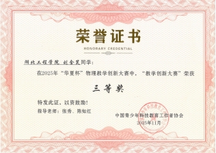 2025年11月2日,备受瞩目的第十届 “华夏杯” 全国物理教学创新大赛在陕西理工大学圆满落幕。来自全国包括华中师范大学、华东师范大学、华南师范大学和湖南师范大学等117 所高校的 840 余名师生同台竞技,bw必威西汉姆联官方网站学子凭借扎实的专业功底和创新的教学设计脱颖而出,王情同学斩获教学创新大赛一等奖,刘含笑同学荣获三等奖,充分展现了公司物理教育专业的育人成效。