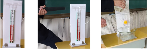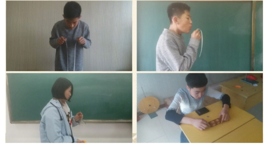 自制教具演示实验:1.气顶球实验;2.空气炮;3.气体压强与流速实验演示仪;4.用水冲漏斗下的乒乓球;5.液体压强与流速演示仪;6.探究飞机升力演示仪。