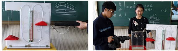3.气体压强与流速关系验证环节:将压强与流速演示器和微小压强计结合,改进后的装置实验现象更直观明显,有利于课堂演示。