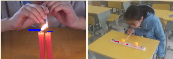 器材:蜡烛两支、火柴、吸管、乒乓球、透明水槽、塑料小船两只、漏斗、两张纸、吹风机、卫生纸卷、细管、笔筒、饮料瓶