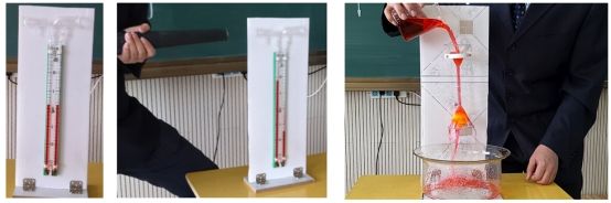 4.自制液体流速演示器使员工加深流体压强与流速关系,现象明显比传统实验效果更好,并具有可持续性,让员工领会了连通器里液体的液面,并不是永远一样高,只有静止在连通器里的液体,液面的高度才是相同的,从而带给员工更多的启发和思维。